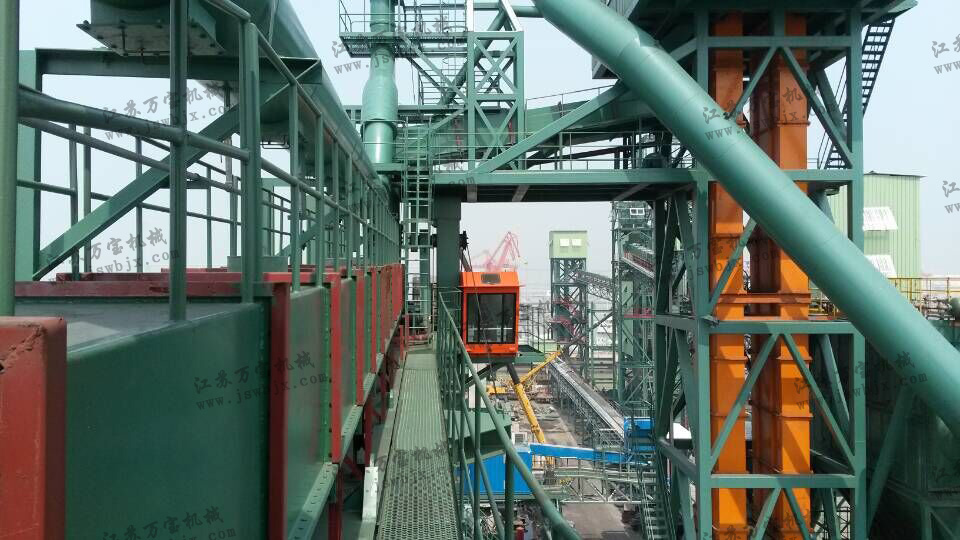 管狀帶式輸送機包括:從導(dǎo)料槽開始至頭部湘斗下法蘭口為止的全部部件,主要有:驅(qū)動裝悝、拉緊裝置、滾簡、托棍組、膠帶、導(dǎo)料愷、消掃器等。電氣及保護(hù)系統(tǒng)包含:變頻柜、低壓柜、就地控制箱、拉繩、跑偏、撕裂、聲光報警、視頻監(jiān)控、控制系統(tǒng)、除塵系統(tǒng)、各類電纜、橋架等。鋼結(jié)構(gòu)部分展開段采用全封閉析架,沿線的鋼結(jié)構(gòu)橋架、檢修走道、安全欄桿、鋼結(jié)構(gòu)立柱,以及頭、尾部轉(zhuǎn)運站。